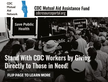 The CDC Mutual Aid Network provides essential guidance on navigating unemployment, financial planning, mental health, job boards, and other critical needs. Through their Mutual Aid Assistance Fund, they offer direct financial support to federal employees impacted by Reductions in Force (RIFs), contract terminations, and furloughs.