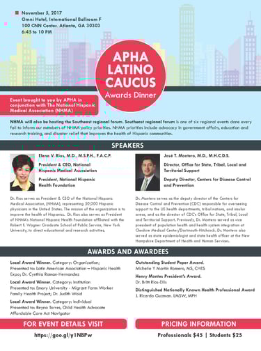 Created event flyer design for the APHA Latino Caucus awards ceremony in Atlanta, GA.