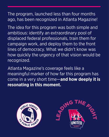 United for Georgia Women (UFGW) is a partnership between Georgia House and Senate leaders and dedicated public servants who refuse to be silenced. Together, we are building progressive power in Georgia by funding legislative candidates in their fight for justice, freedom and equality.